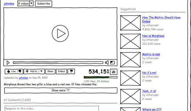 Exemple de wireframe basse fidélité.